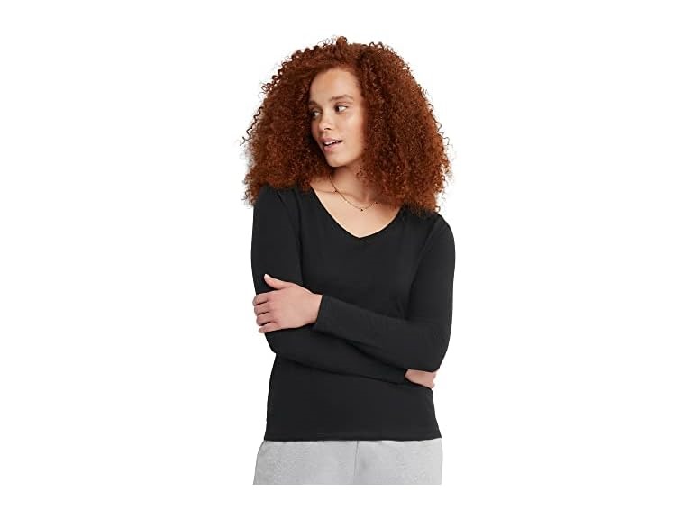 - (1) Hanes Womens Cotton V-Neck Long Sleeve Tee