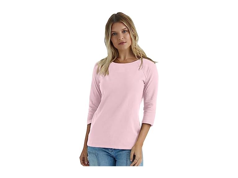 - SCOOPNECK - A flattering design, this raglan sleeve tee is designed with a wide, feminine scoop neckline.