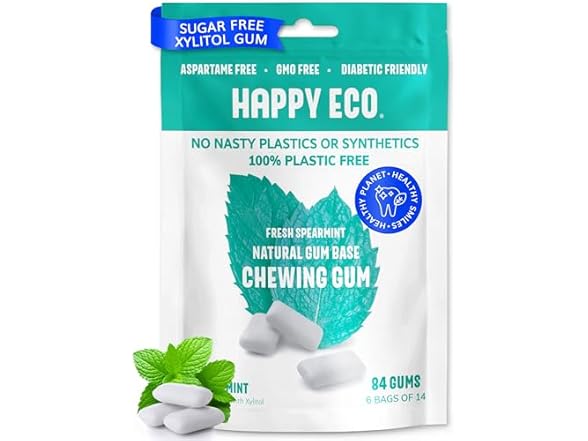 - (1) HAPPY ECO Sugar Free Spearmint Gum, 84pc