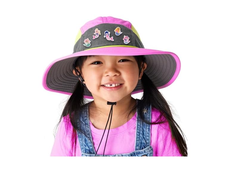 - (1) Happy Gear Custom UPF 50+ Sun Hat for Kids - Personalized Hat with Hook & Loop for Interchangeable Patches - Includes Mermaid Patch - Adjustable Drawstring & Chin Strap - Pink - Medium