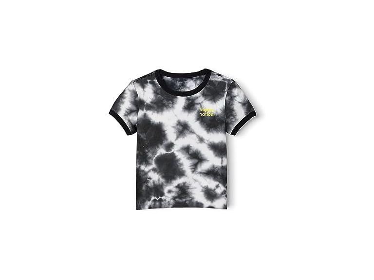 - (1) Happy Nation Cotton Crewneck Ringer T Shirt, Pure Black Tie Dye, Small+
