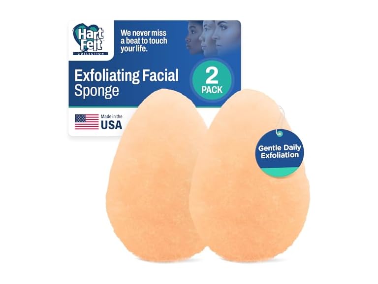 (1) HartFelt 2ct Tear Drop Gentle Face Scrubber for Women | Reusable Facial Sponges for Daily Cleansing | Facial Exfoliating Pads for Removing Dead Skin, Dirt & Makeup | Made in USA