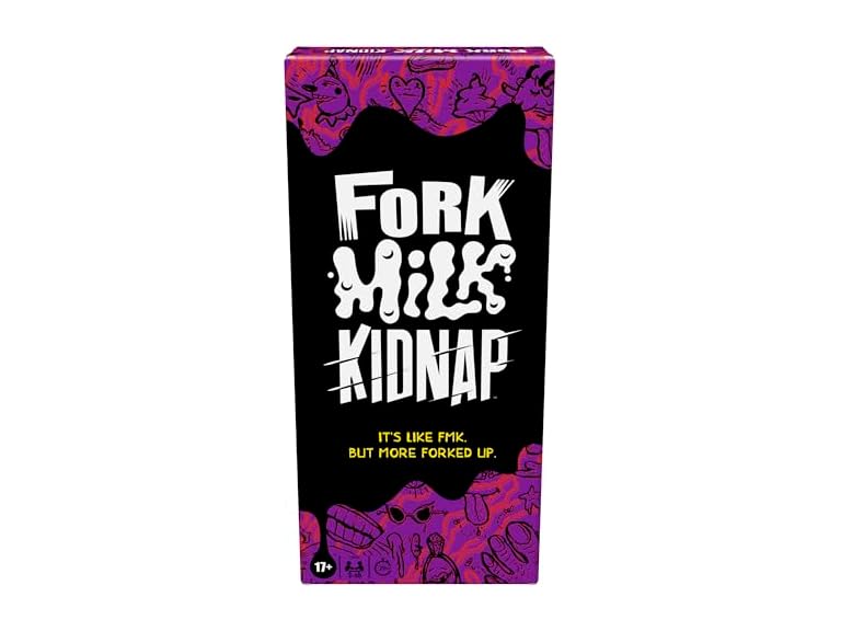 - (1) Hasbro Gaming Fork Milk Kidnap Game for Adults Only, an Adult Party Game of Questionable Choices, Ages 17+, for 3 to 10 Players, Hilarious NSFW Card Games