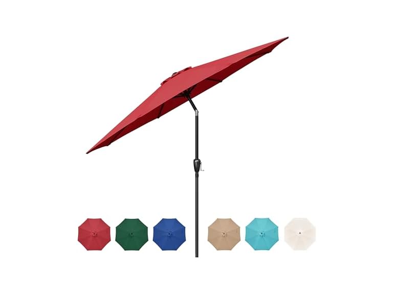 - HealSmart 9ft Patio Umbrella with Push Button Tilt/Crank, Outdoor Table Market Yard Umbrella with 8 Sturdy Ribs for Garden, Backyard, Deck, Pool, Red