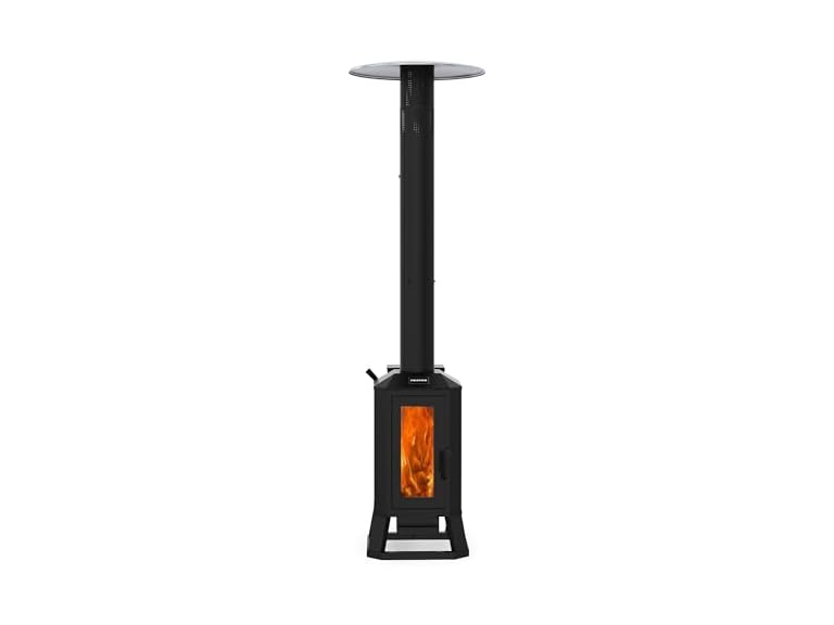 - HEAVY-DUTY POWDER-COATED STEEL BODY: Built to last with a durable steel frame, large steel chimney, stainless reflector, and high-temp black coating—giving this wood pellet heater rugged strength for reliable outdoor use.