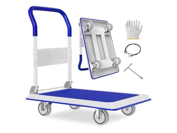 - 【WIDELY USED】Whether the dolly cart is used to carry luggage or goods,travel or move in,this platform truck is competent and can be easily folded and placed in any position.The moving dolly is very suitable for carrying heavy and bulky items,such as boxes,furniture,gardening supplies,in the