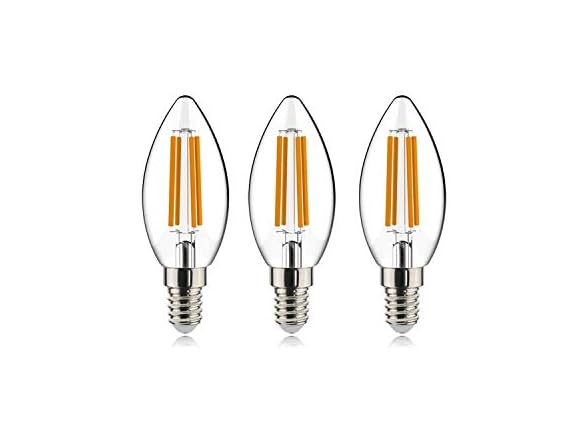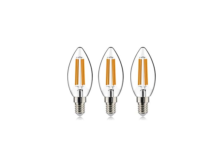 In the Box: (1) helloify B11 Dimmable Vintage LED Edison Candelabra Bulb 4.5W, 60W Equivalent, High Brightness, 2700K Warm White Light, Clear Glass, Candles/Chandelier Style, E12 Base, 3PCS