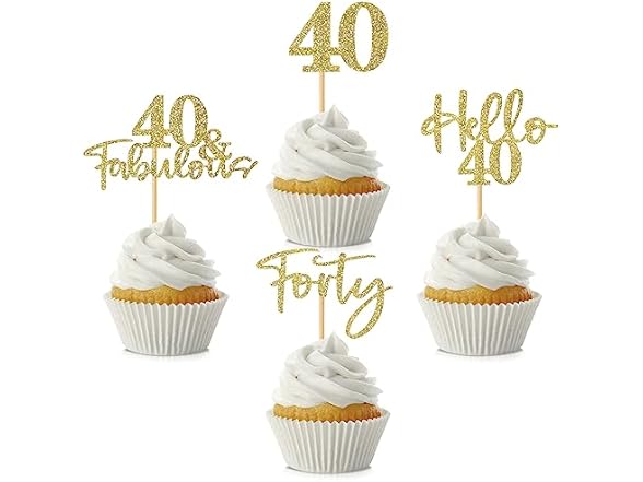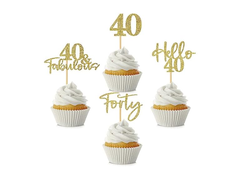 - 【Proper Size & NO DIY】4 different pattern 40th birthday cupcake decorations measure 2.9" x 2.8"/3.1" x 1.5"/3.7" x 2.1"/3.1" x 2". These cupcake toppers are pre-assembled, and you just simply need to place this cute cake topper on your cake to get the party started.