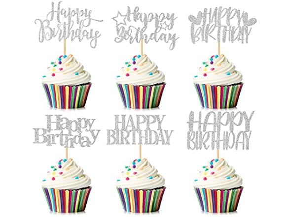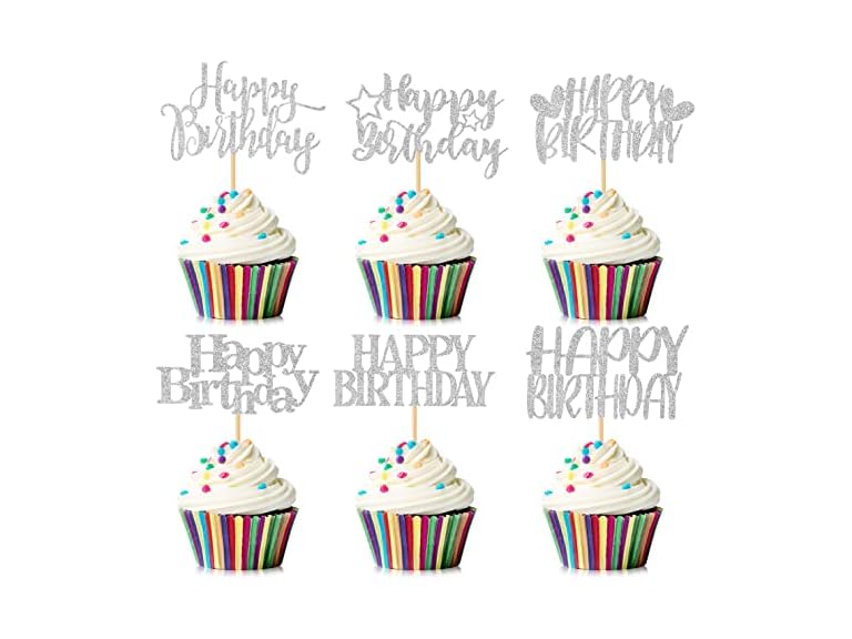 - (1) Hengmerry 36Pcs Happy Birthday Cupcake Toppers Glitter Birthday Cake Pick Decorations for Birthday Party Anniversary Celebration, Silver