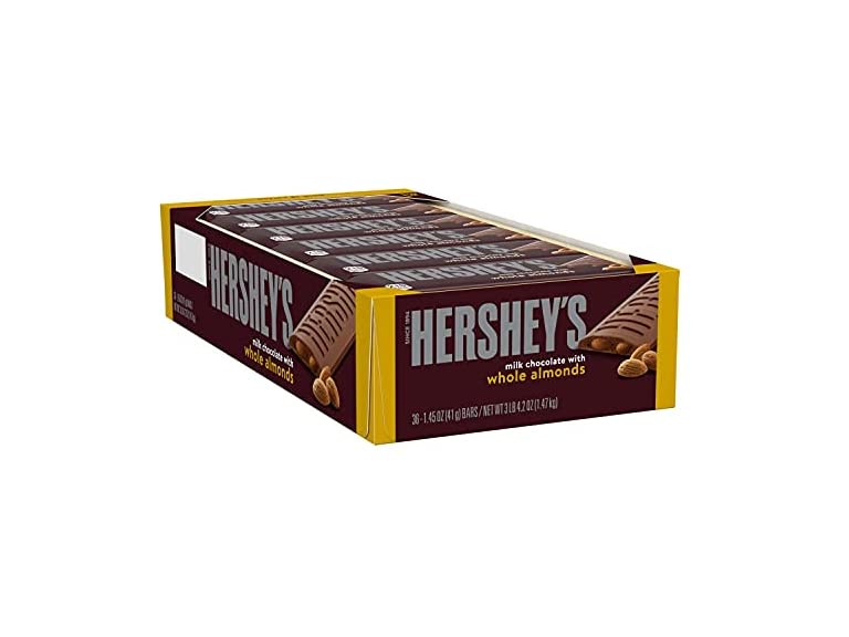 - Contains thirty six (36) 1.45-ounce HERSHEY'S Milk Chocolate with Whole Almonds Candy Bars in a bulk box
