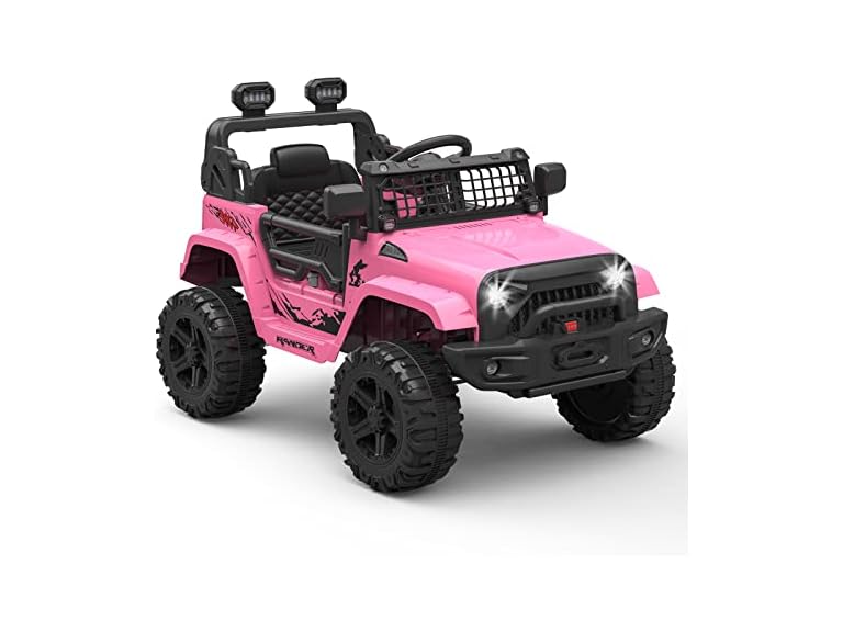 - Hetoy 12V Kids Electric Vehicles Ride On Truck Car w/Parent Remote Control, Spring Suspension, LED Lights, AUX Port (Pink)