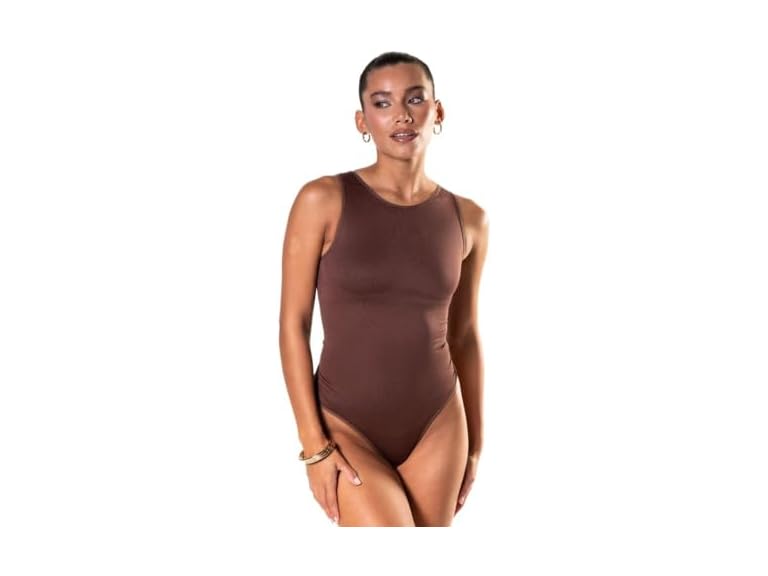 - (1) HeyShape Bodysuits for Women - Round Neck Leotard, Tank Top Thong - Body Shaper Tummy Control Shapewear for Women, Brown S
