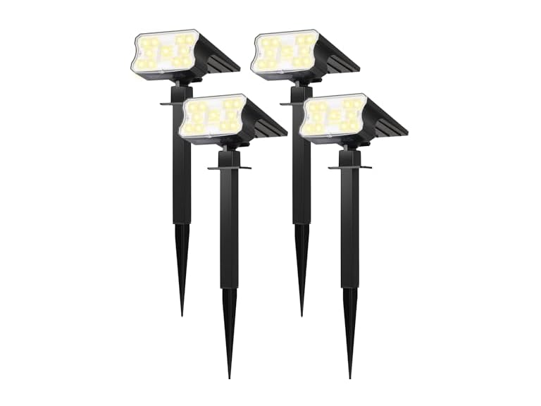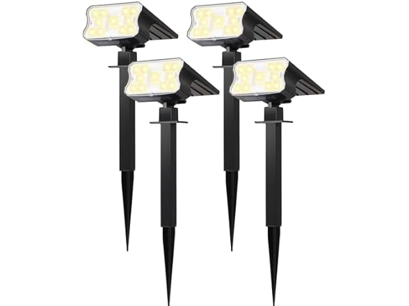 - (1) HGGH Solar Lights Outdoor Waterproof IP67, 60 LED 3 Lighting Modes Solar Spot Lights Outdoor for Yard Garden Pathway Landscape, Auto On/Off, Function 2 in 1(4 Pack)- your choice of color