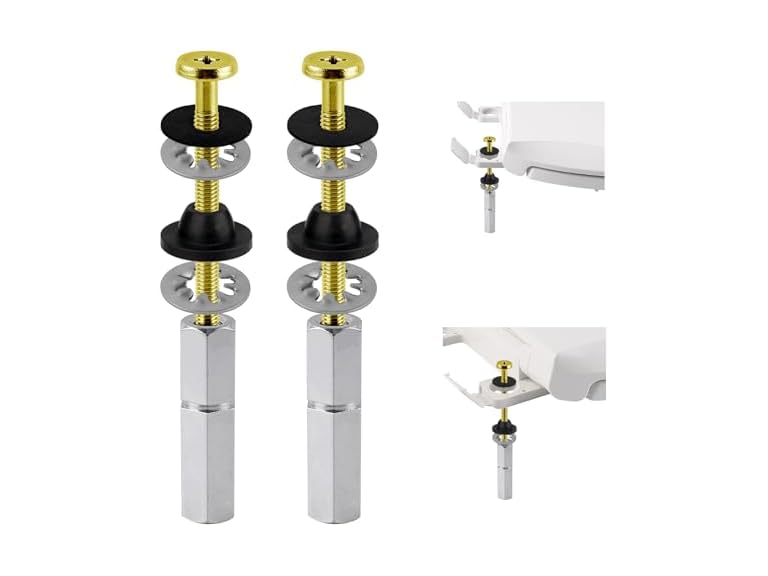 - Suitability: For a proper seal, use metal washers and stainless-steel lock nuts. All conventional toilets are compatible with this all-metal toilet seat bolt set. TOTO, Kohler, and American Standard toilet bolts and nuts are all compatible.