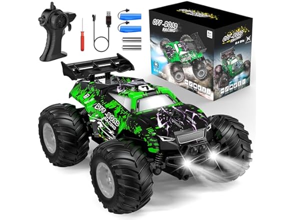 - (1) Remote Control Car, All-Terrain Remote Control Car, Rechargeable Rc Truck with LED, 1:20, 10KM/H, 2 Motors, 2.4GHZ