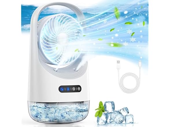 - ❄️[Portable & Large Water Tank] This Air Cooler Compact and portable, easily fit into your backpack or suitcase. Designed with USB-C port, whether it is a laptop, rechargeable treasure or car charger, it can provide constant power for it, so that the coolness is always with you! 400ml large-capacity water tank for long-lasting