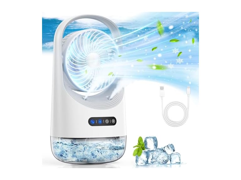 - ❄️[3 Adjustable Speeds & Spray Modes] Breeze Mode:Provides a gentle breeze for cooler weather or light cooling needs; Spray Mode:medium wind speed plus water spray, cool and hydrating for hot and dry weather; Ice mode:strong wind with water spray and ice cooling, rapid cooling, suitable for hot weather.