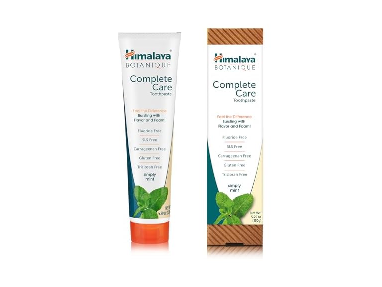 - (1) Himalaya Botanique Complete Care Toothpaste with Xylitol and Neem, Mint Flavor - Fluoride Free Toothpaste for Clean Teeth & Fresh Breath - Vegan, Gluten Free, No Artificial Flavors, 5.29 oz