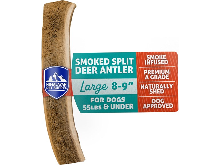 - (1) Himalayan Dog Chew Smoked Deer Antlers for Dogs – Long-Lasting Chew, Natural Split Antlers, Dog Antler Chews for Large Dogs Weighing 30-45 lbs, Splinter-Free Dog Chew Treats – 1 Large Smoked Antler