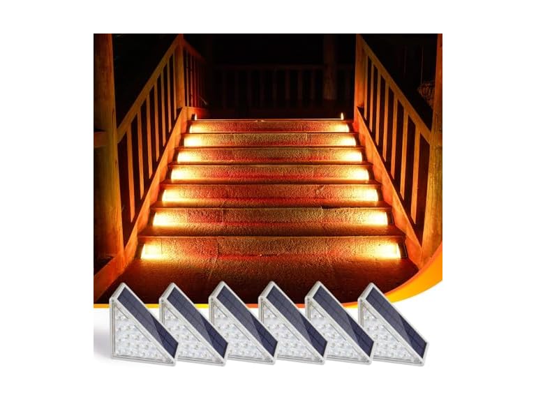 - HiYed Solar Step Lights 6-pack with Solar Outdoor Stair,Porch,Patio,Yard,Deck & Pathway Adjustable Brightness (Warm White)