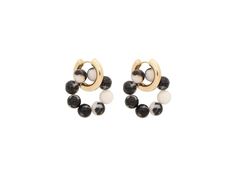 - (1) HJO Elegant Natural Stone Pearl Beaded Huggie Hoop Earrings for Women (Zebra)