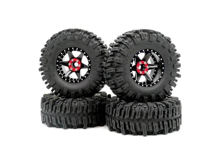 - Quantity: 4x 2.2 Mud Slingers Tires with foam + 4x 2.2 Beadlock Wheels ( Adjustable 4 Different Negative Offsets )