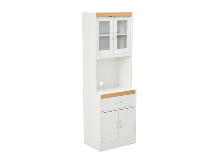 - (1) Hodedah Long Standing Kitchen Cabinet with Top and Bottom Enclosed Cabinet Space, One Drawer, Large Open Space for Microwave, White