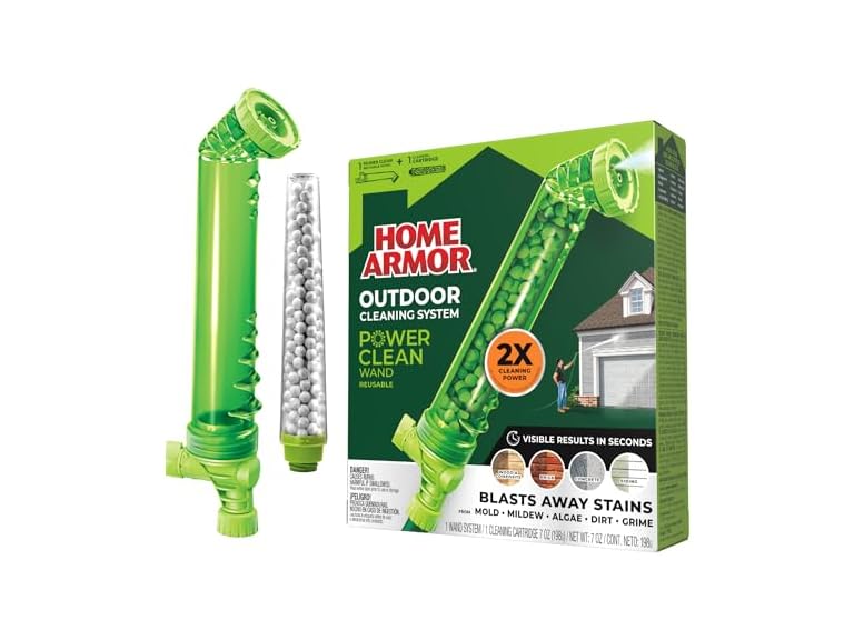 - (1) Home Armor Power Clean Wand, Outdoor Cleaning System, Blasts Away Stains from Mold, Mildew, Algae, Dirt and Grime for Visible Results in Seconds, No Scrubbing Required, Reusable