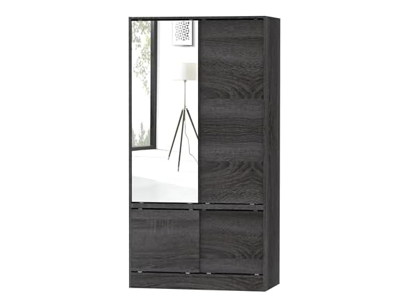 - (1) Charred Oak Wardrobe Organizer Cabinet by Home Basics | Sliding Mirror Side Panel | 2 Bottom Cabinets for Storage