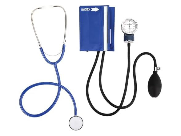 - Includes: aneroid gauge, arm cuff, single-head stethoscope, storage case, instruction manual with 1-year warranty