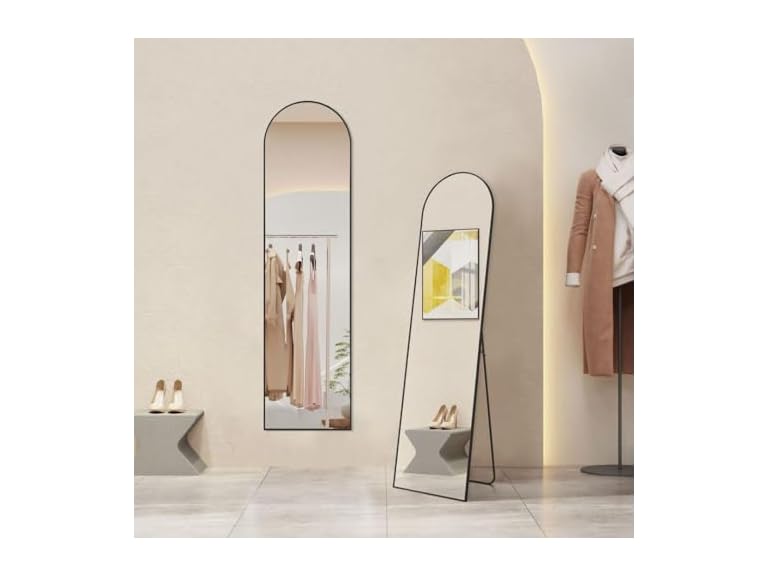 - (1) Arched Full Length Mirror, 59"x 16" Floor Mirror with Aluminum Alloy Thin Frame, Full Body Mirrors Hanging or Leaning for Wall Bedroom Dressing Mirror Home Decor, Black