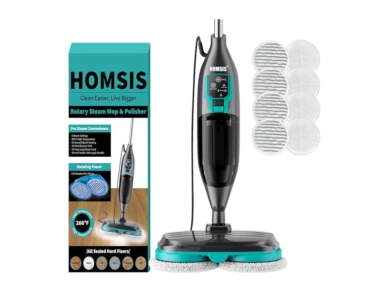- (1) homsis Steam Mop Floor Steamer Scrubber: Hardwood Tile Laminate and Vinyl Hard Surface Floors Scrub Cleaning Machine
