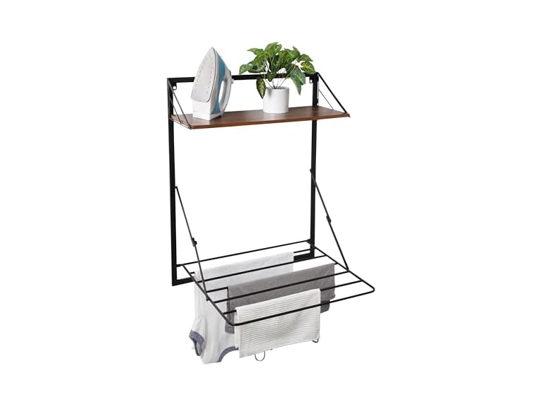 - (1) Honey-Can-Do Wall-Mount or Over-The-Door Compact Collapsible Drying Rack with Extra Shelf, Black & Walnut