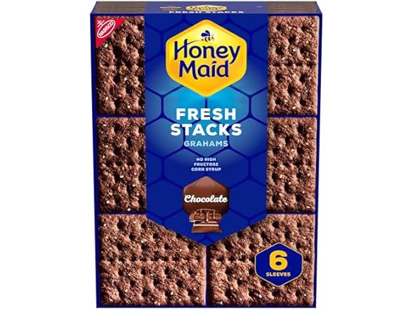 - One 12.2 oz box of HONEY MAID Chocolate Fresh Stacks Grahams, Chocolate Graham Crackers, 6 total fresh stacks