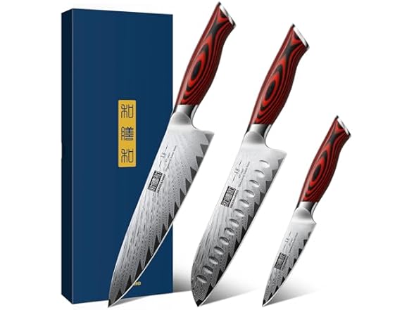 - Professional Kitchen Knife - HOSHANHO 3-piece professional kitchen knife is suitable for home and professional use. Our knife set has an 8-inch chef knife, a 7-inch santoku knife, and a 3.75-inch paring knife. All your needs of kitchen work such as chopping, slicing, and dicing can finished with this kitchen knife set.