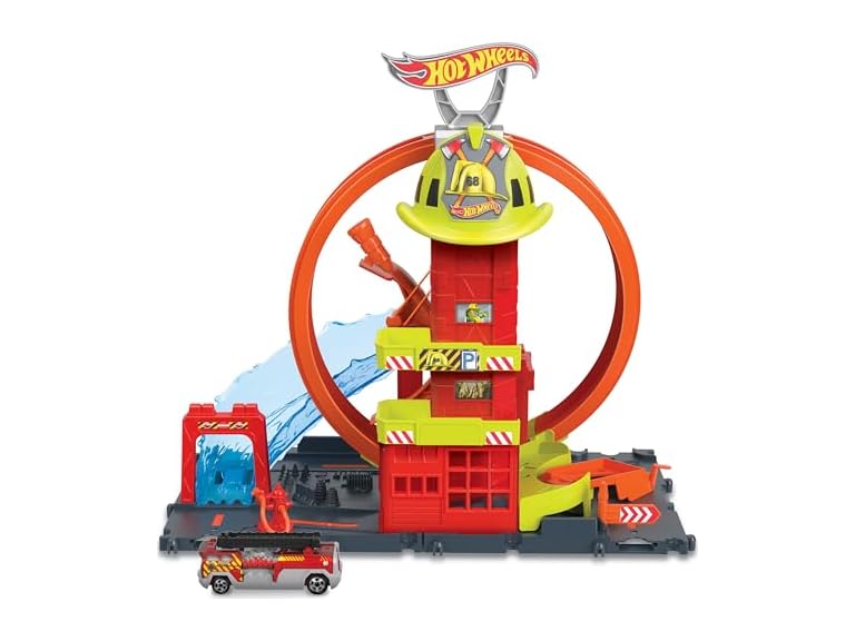 - (1) Hot Wheels City with 1 Toy Car, Kid-Powered Elevator, Water-Like Ramp, Track-Play Features, Connects to Other Sets, Fire Station with Super Loop (Amazon Exclusive)