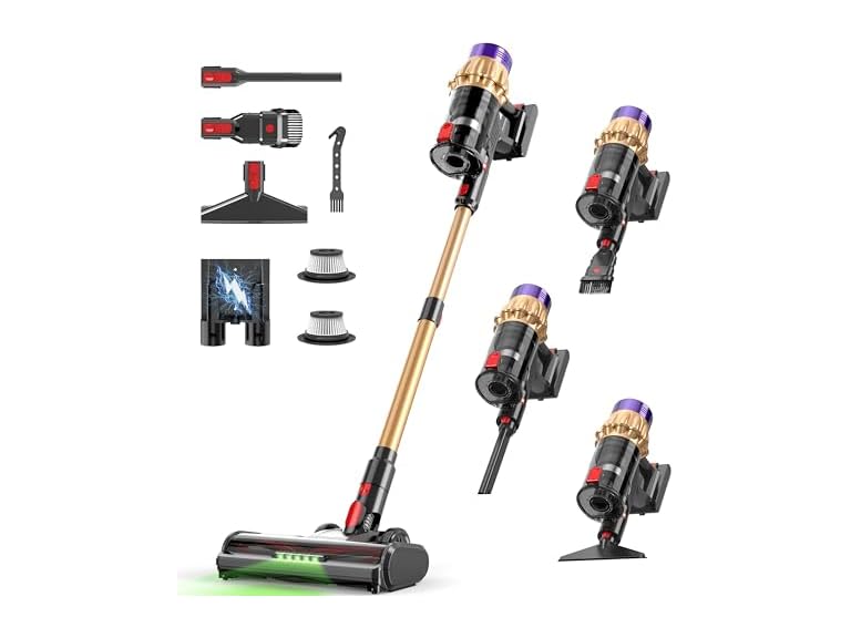- 【Upgraded 600W/50KPA Brushless Motor】With a 600-watt brushless motor and 50 KPa suction power, cordless vacuum delivers a deep cleaning experience. Designed for long-lasting power and high efficiency, cordless vacuum maintains strong airflow to effectively remove dirt from carpets and hard floors while being highly durable. Even hard-to-reach stains in corners and high places can be easily handled. It makes the cleaning process highly efficient, providing an unprecedented cleaning experience.