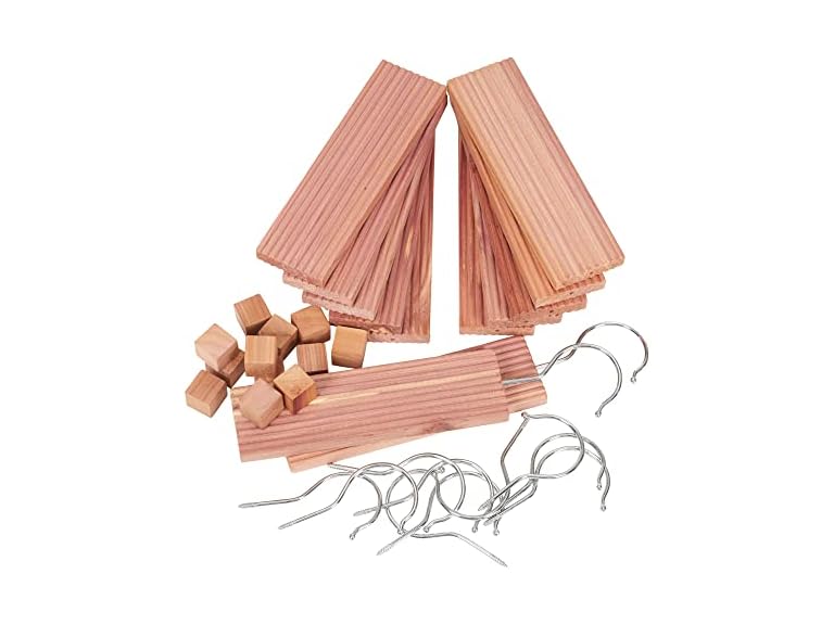 - Cedar closet value pack with 12 cedar blocks and 12 cedar hang-ups that hang in rod or wire closets