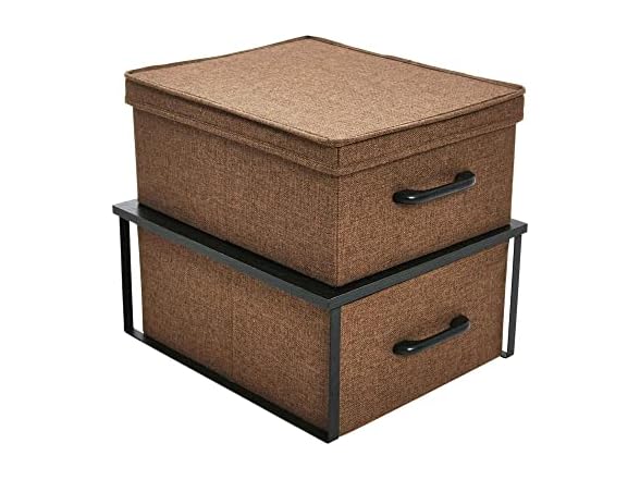 - Household Essentials Stacking Storage Boxes with Laminate Top, Set of 2, Black Oak