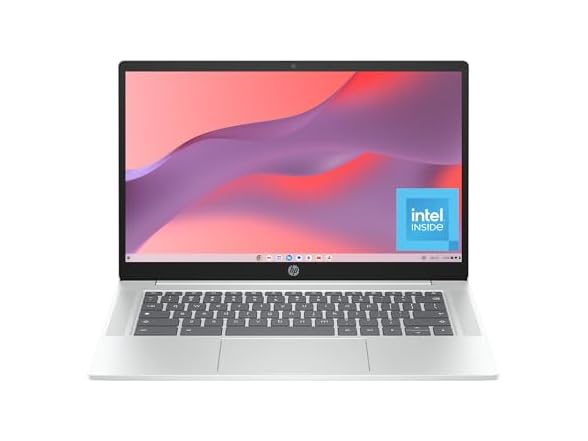 The HP Chromebook 14 inch Laptop lets you take on the day with an Intel processor paired with the easy to use and easy to love Chrome OS. With plenty of memory and wireless connectivity it is easy to check everything off your list. Plus, this laptop is designed to be more sustainable using ocean-bound plastic and post-consumer recycled plastics. Connect confidently with the high-quality camera and an enhanced keyboard with mic mute, screenshot, and pause play keys all within easy reach. The HP Chromebook 14 inch Laptop comes with a 45 W USB Type-C power adapter and goes from 0 to 50% charge in 45 minutes. Plus, it contains recycled materials and is EPEAT Gold with Climate+ registered and ENERGY STAR Certified.