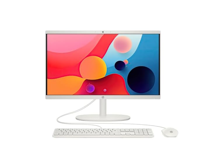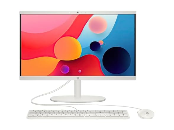 - HP 22-dg0000 All-in-One Desktop, 4 Core Intel Pentium Silver J5040, Intel UHD Graphics 600, 8GB DDR4, 128GB M.2 SSD, 21.45" FHD IPS Display, Wi-Fi, RJ-45, HDMI, Windows 11 H, Cashmere White