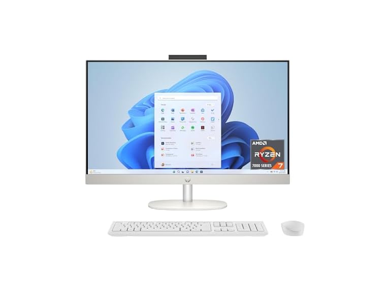 - HP 27" All-in-One Desktop PC, FHD Touchscreen, AMD Ryzen 7 7730U, 16 GB RAM, 512 GB SSD, AMD Radeon Graphics, Windows 11 Home, Shell White, 27- cr0260 (2025)