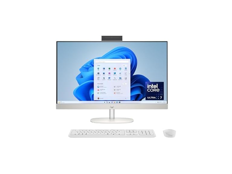 - HP 27 inch All-in-One Desktop PC, FHD Touchscreen, Intel Core Ultra 7 155U, 16 GB RAM, 512 GB SSD, Intel Graphics, Windows 11 Home, Shell White, 27-cr1180