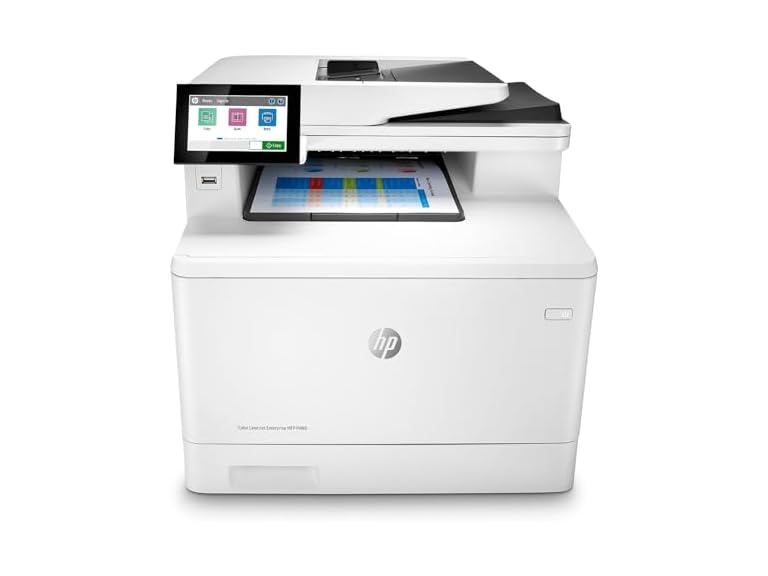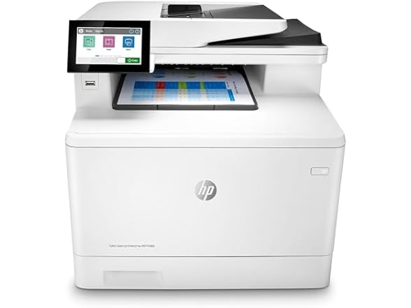 - (1) HP Color LaserJet Enterprise M480f Multifunction Duplex Printer, Print, scan, Copy, Fast speeds, Easy Setup, Advanced Security, Best for Small Teams, Ethernet/USB only (3QA55A)