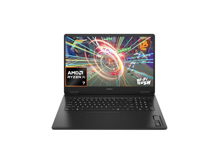 - (1) HP OMEN 17.3 inch Laptop, FHD 48-144Hz Display, AMD Ryzen 7 350, 16 GB RAM, 512 GB SSD, NVIDIA GeForce RTX 5050 GPU (8 GB Dedicated), Windows 11 Home, Shadow Black, 17-db1500nr