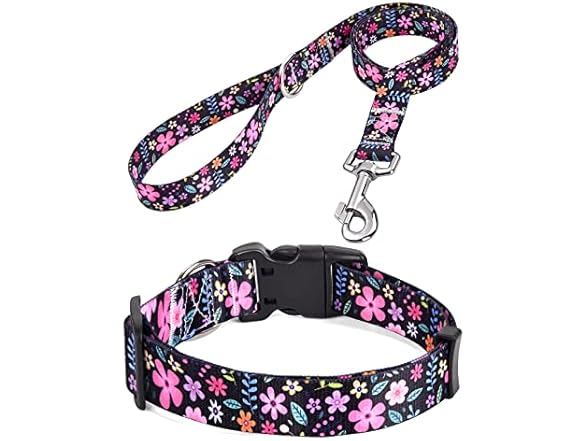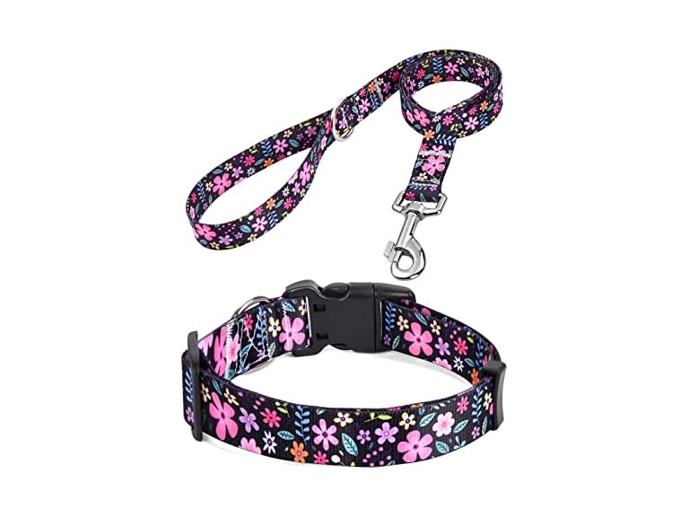 - (1) HQYDDMI Dog Collar and Leash Set for Medium Dogs, with Floral Print, Soft Comfortable Adjustable Collar for Small Medium Large Dogs, Floral Pattern for Girl Boy Dogs(Floral Set,M)