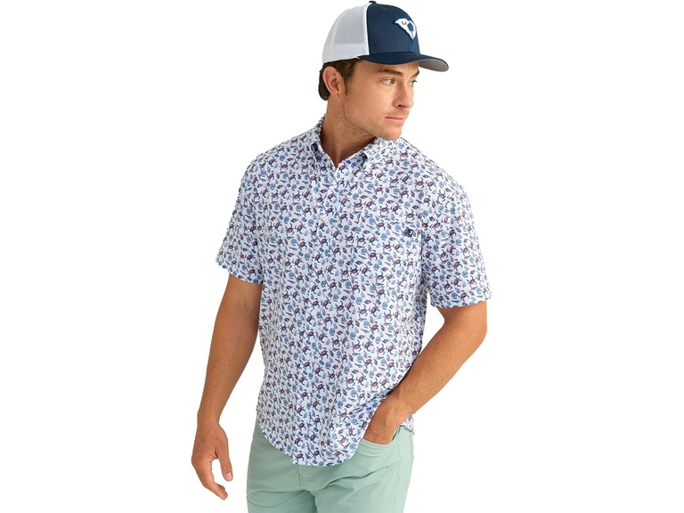 - HUK MENS KONA BUTTON DOWN SHIRT: Crafted of lightweight, breathable, quick-dry fabric with two-way stretch and a built-in microfiber sunglasses wipe. This fishing shirt is optimized for comfort from boat to bar for an enjoyable day in the sun