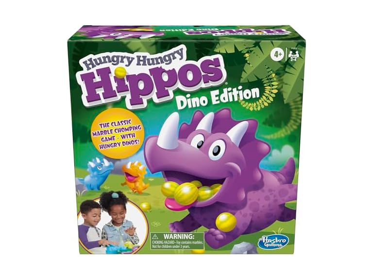 - Hasbro Gaming Hungry Hungry Hippos Dino Edition Board Game, Pre-School Game for Ages 4 and Up; for 2 to 4 Players (Amazon Exclusive)