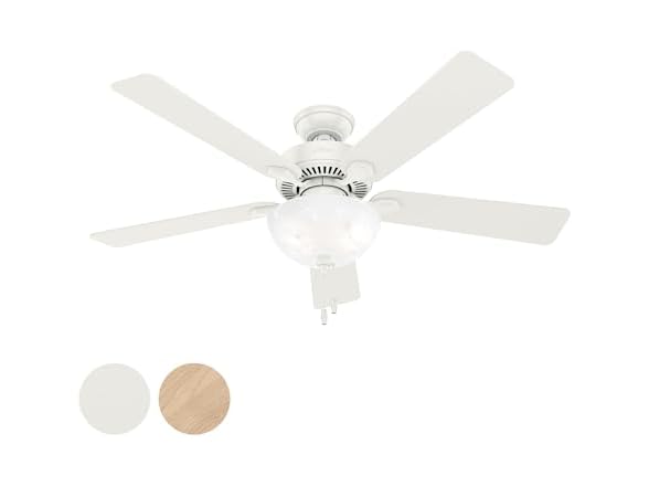 In the Box: (1) Hunter Fan 52 inch Fresh White Indoor Ceiling Fan with LED Light and Pull Chain