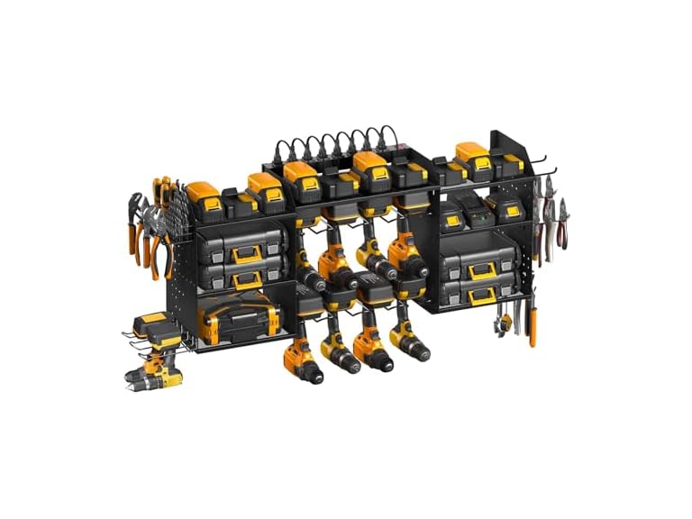 - QUICK INSTALLATION & GIFT READY: Pre-drilled holes and clear instructions enable wall mounting in minutes. Complete power tool holder with charging station makes exceptional Father's Day/Christmas gift for DIYers and professionals.